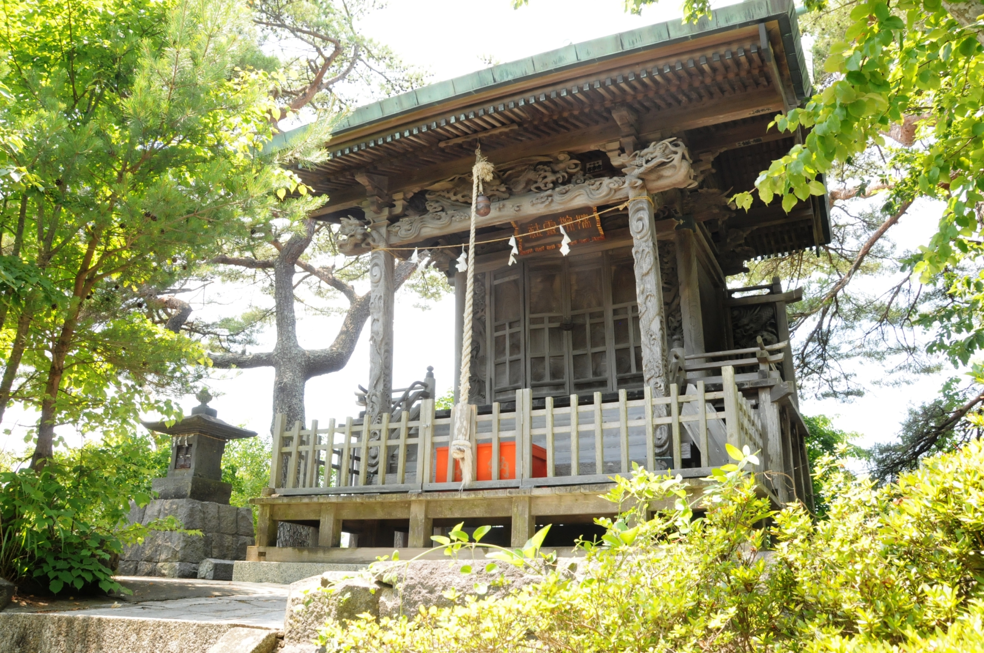 五十鈴神社や当地の海苔養殖の先駆者である猪狩新兵衛を祀った猪狩神社のほか、郷土の歌人熊谷武雄の歌が刻まれた日本百景記念碑、松尾芭蕉の句碑などもあります。港まち・気仙沼のシンボルの一つです。